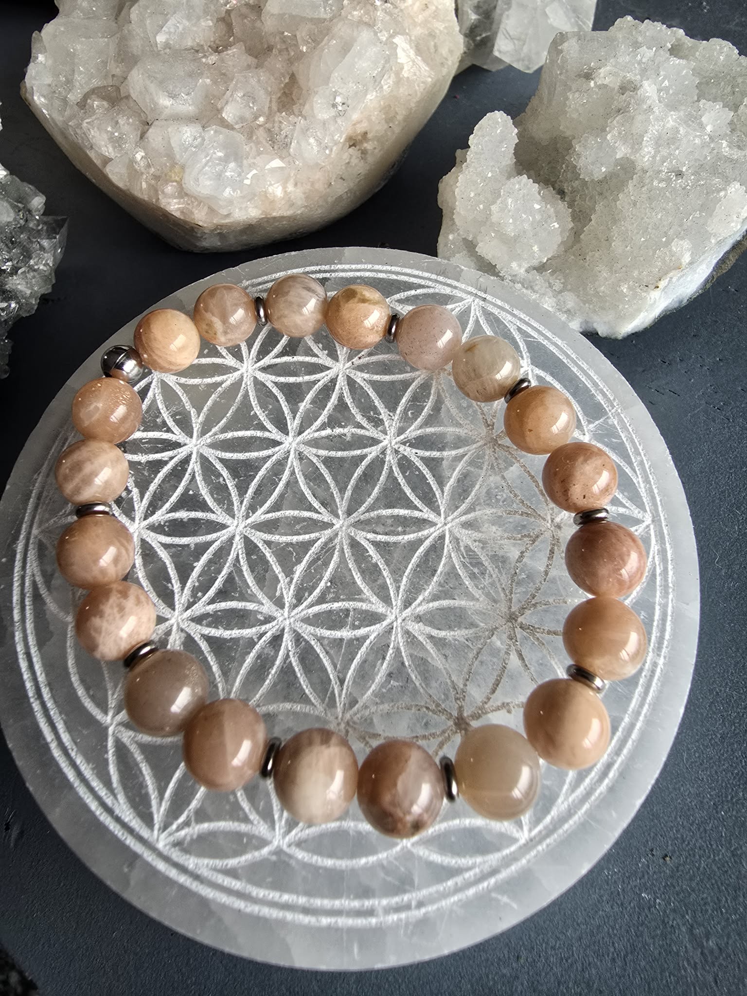 Peach Moonstone: The warm, soothing hues of peach moonstone are associated with love, compassion, and emotional healing. This gemstone can enhance feelings of tenderness and connectivity, making it a wonderful choice for those looking to nurture relationships or heal emotional wounds.