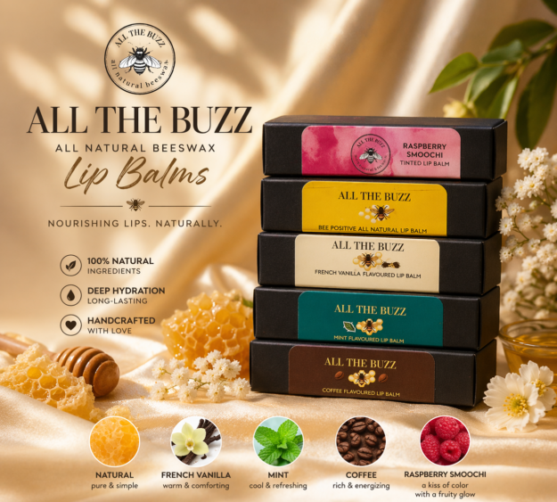 Indulge your lips with All The Buzz All-Natural Beeswax Lip Balms — handcrafted with care, powered by nature, and designed to nourish, protect, and glow 💛