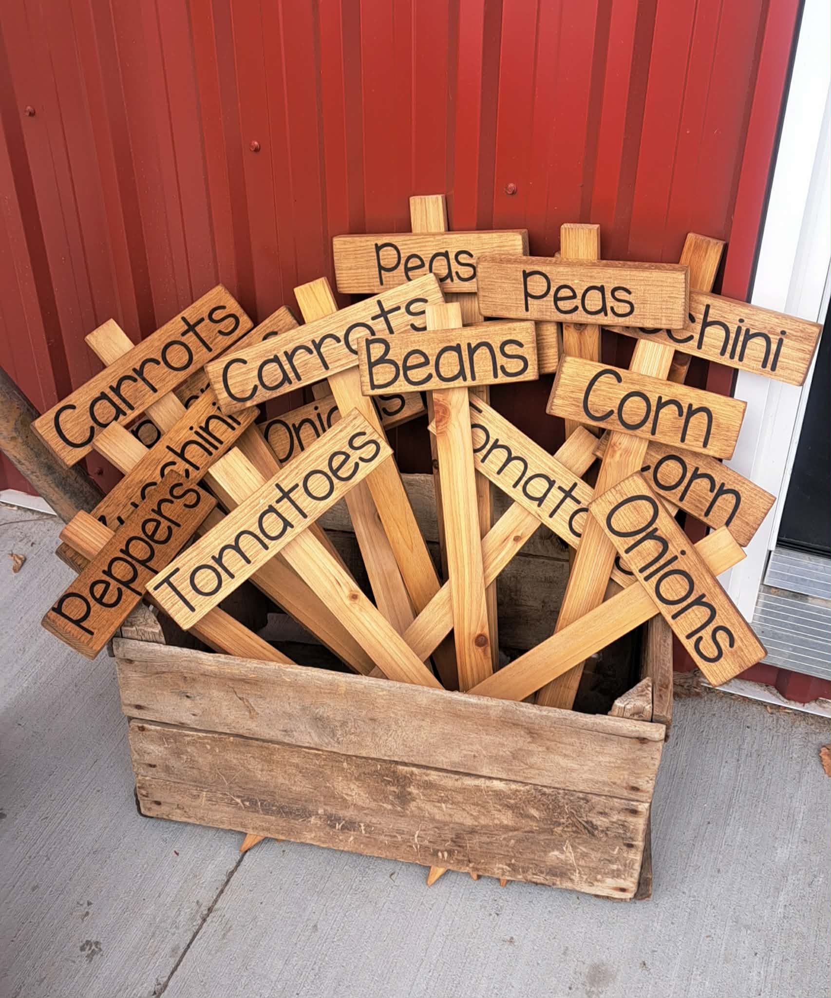 Roots & Roses offer painted garden stakes signs with all your favorite plant names for this garden season. These signs are 24″ tall and vary in width (7-12″) depending on vegetable name. Each sign is painted on and coated with a clear varnish to help these signs stand up in the long summer days. As a big home gardener, we made these signs as if they were for my own gardens.