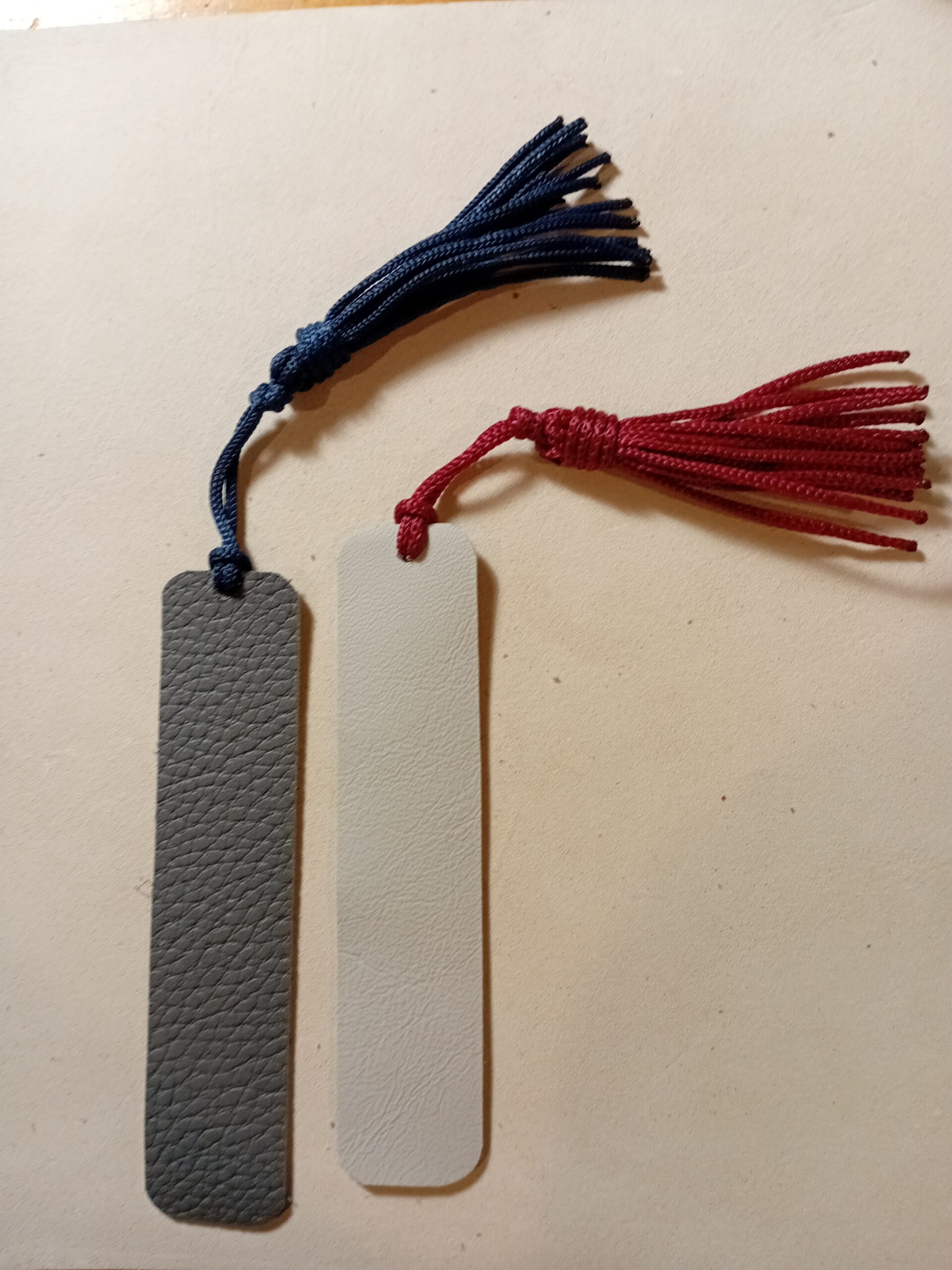 A handmade leather bookmark with a tassel, crafted from flexible and durable chrome-tanned leather.