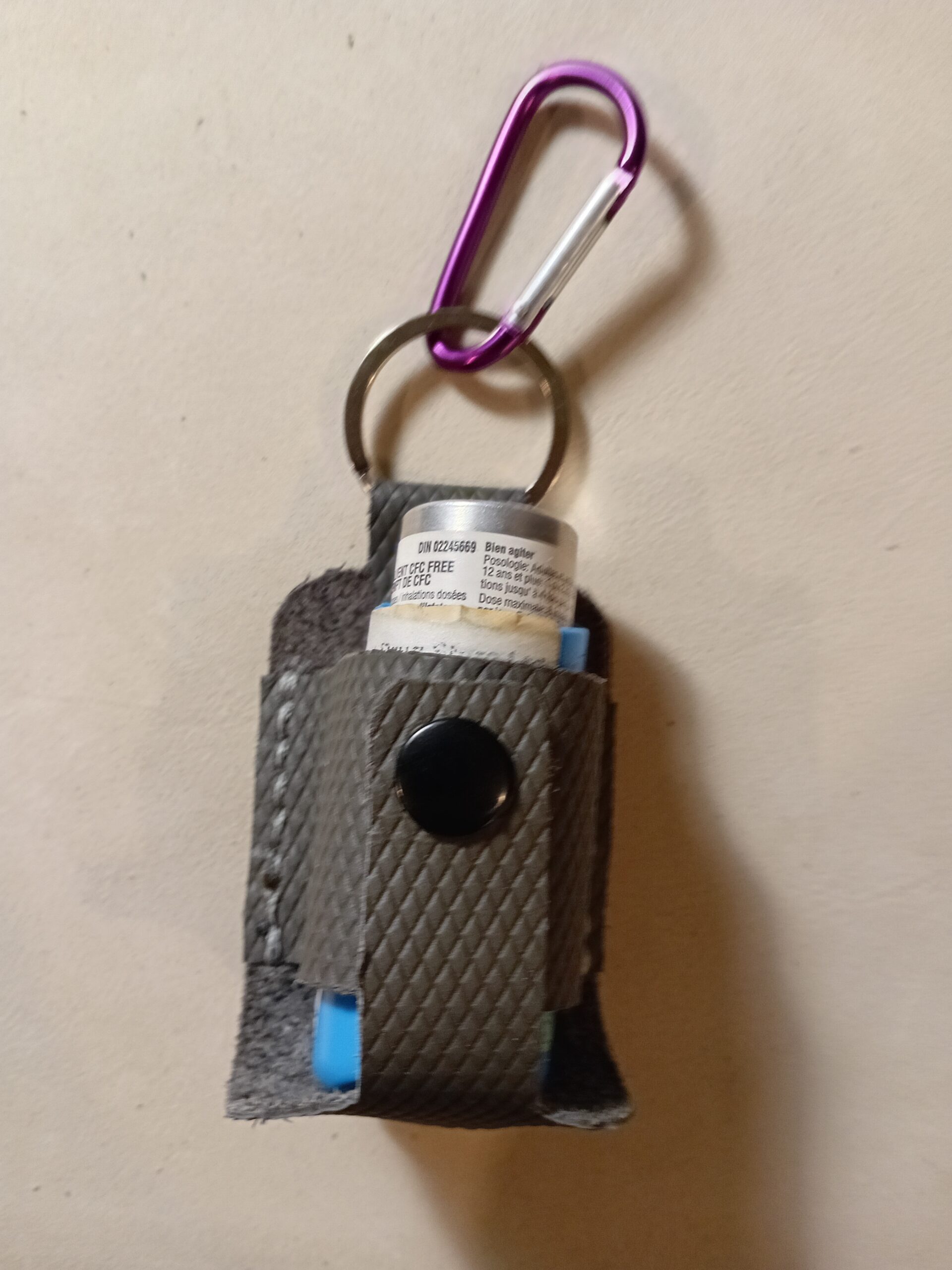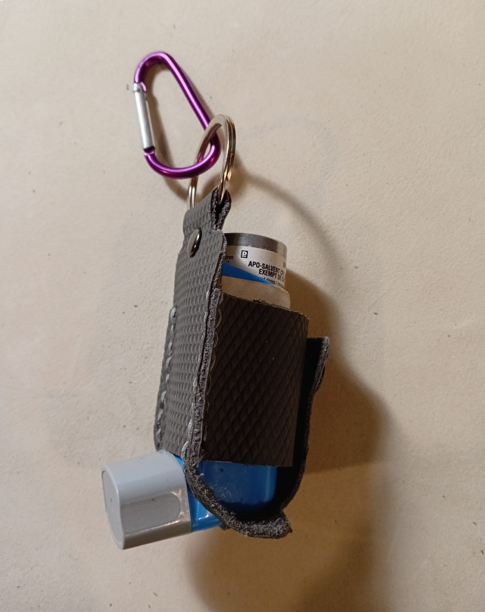 It’s handmade and handstitched. It fits both a regular size inhaler and small size inhaler. The chrome tan leather is a flexible, but very durable material.