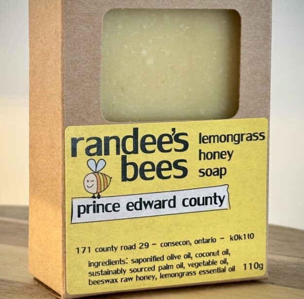 Ingredients: Saponified olive oil, sustainably sourced palm oil, coconut oil, vegetable oil, lemongrass essential oil, unpasteurized Ontario honey.