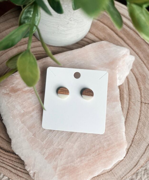 These stud earrings are created with wood and resin, blending both modern and earthy vibes.
